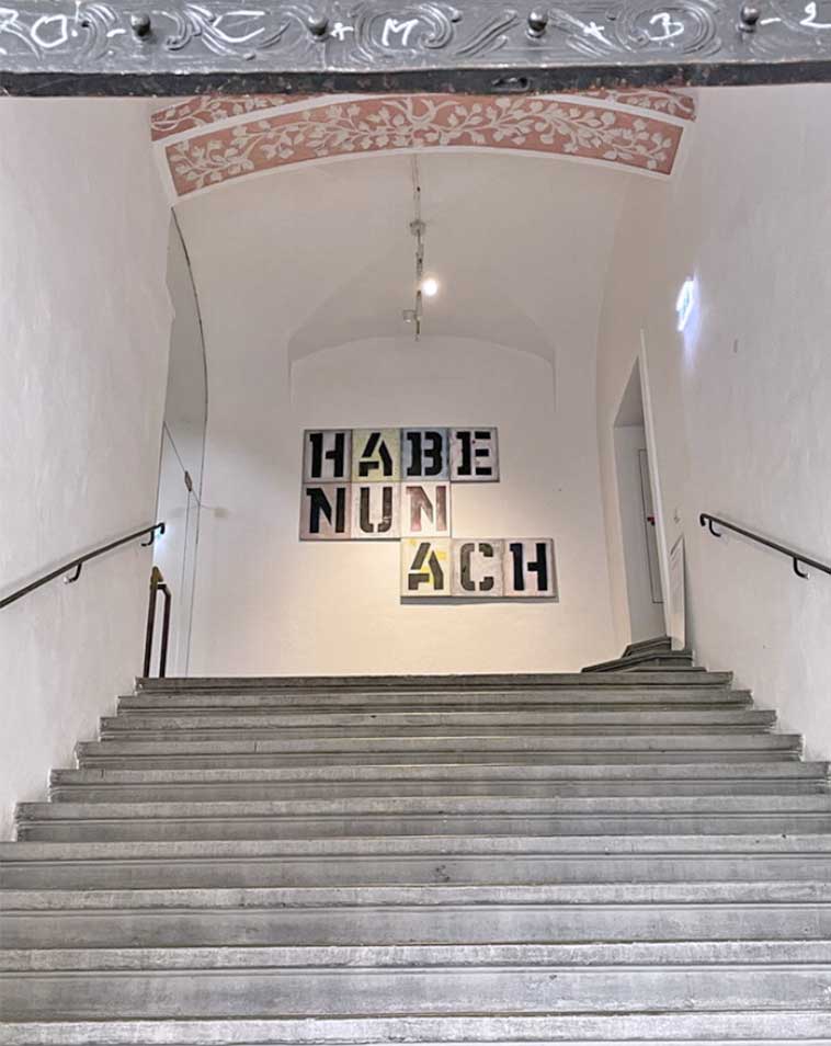 In einem monumentalen Parcours durch die erst kürzlich nochmals großzügig erweiterten Ausstellungsflächen des weitläufigen Minoritenzentrums sind die Arbeiten von 63 Künstler:innern - eine Vielzahl an in-situ Kunstwerken und Sammlungsstücken, sowie neu für die Zusammenschau angefertigte Werke - zu erleben; ich bin mit mehreren Arbeiten vertreten.